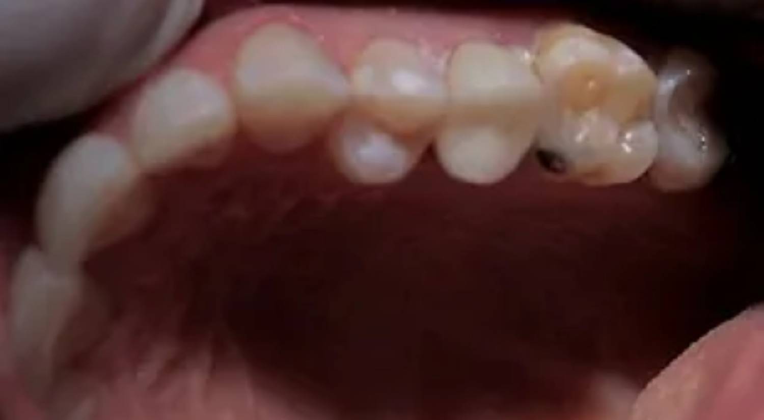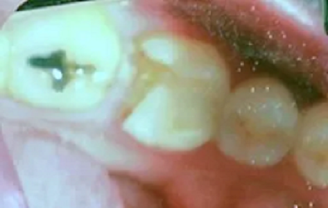 Posterior molar fractured tooth before treatment. Looking much better after restoration with a Procera Porcelain crown.
